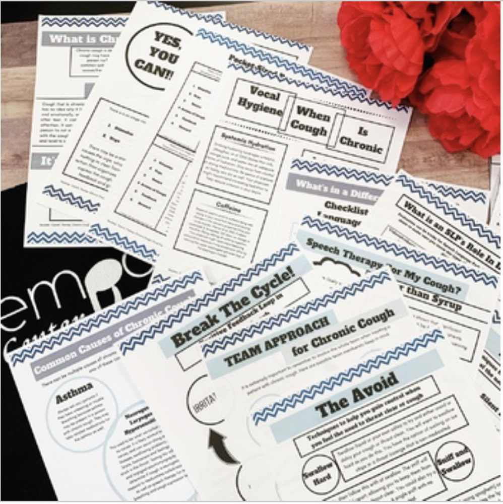 Treating chronic cough can be difficult, especially if you are a speech pathologist who doesn’t see it often. Harder still, is getting information into your patients’ hands that is succinct and easy to read, backed by research. You’ll love these crisp and beautiful handouts! The best part? They are in English and Spanish!