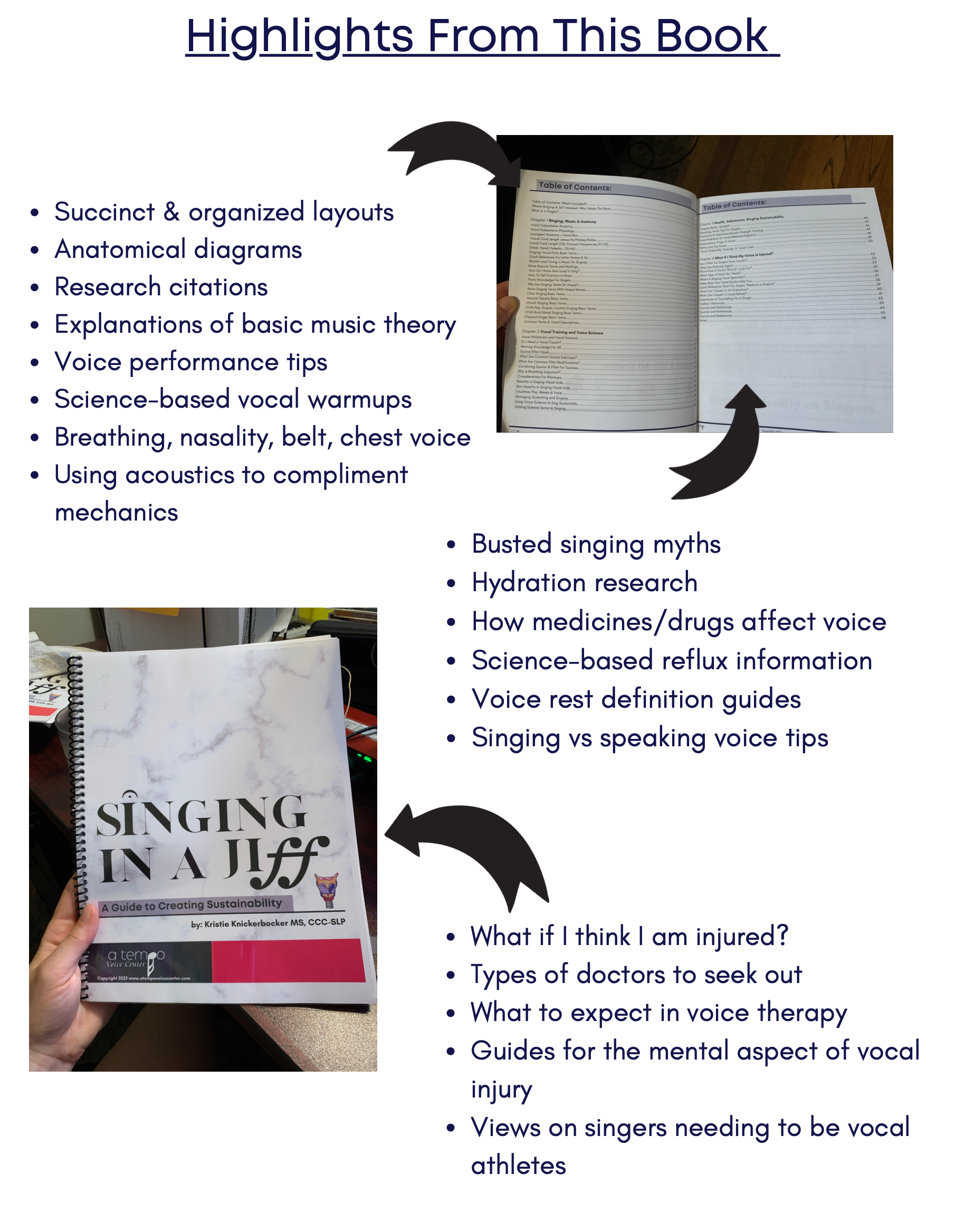 The book has 4 sections. All information has research article references from peer-reviewed journals and books carefully crafted into layman’s terms so that anybody who sings can debunk myths that have to do with singing.