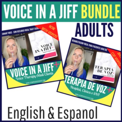 “Voice in a Jiff!+” Hospital, Clinic or SNF is a voice rehabilitation manual for adult clients PLUS video demonstration of each technique.